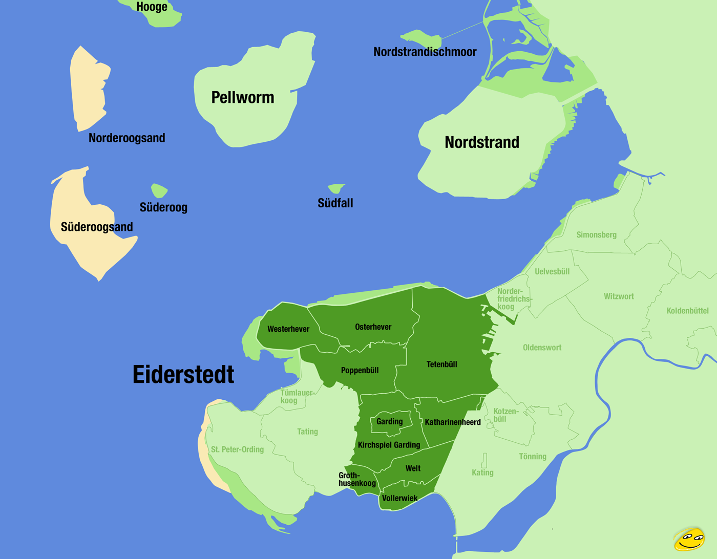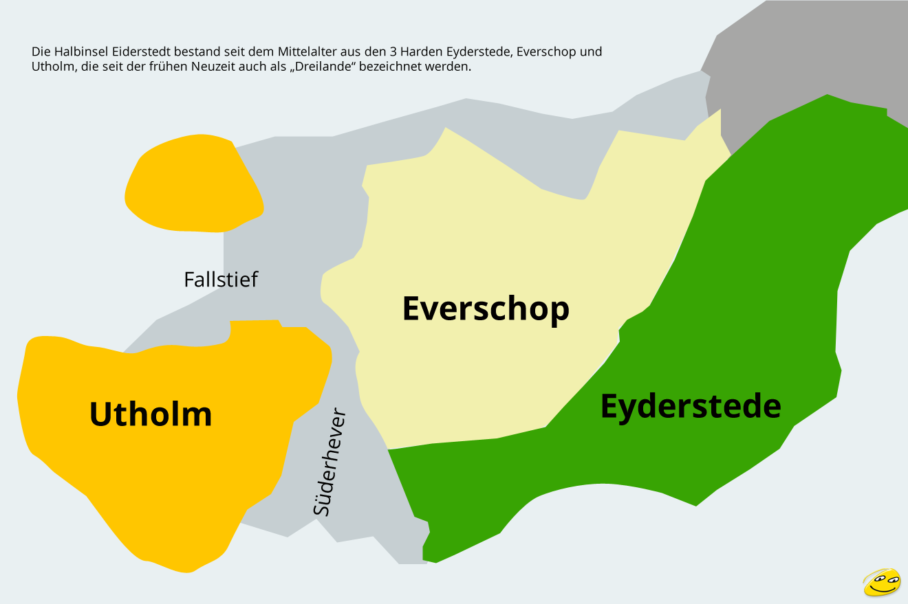1362 zerstörte die Jahrhundertsturmflut „Grote Mandrenke“ weite Teile des Siedlungsgebietes und somit ist die Rekonstruktion der damaligen Landschaft Eiderstedt (hauptsächlich Everschop) teilweise nicht möglich.